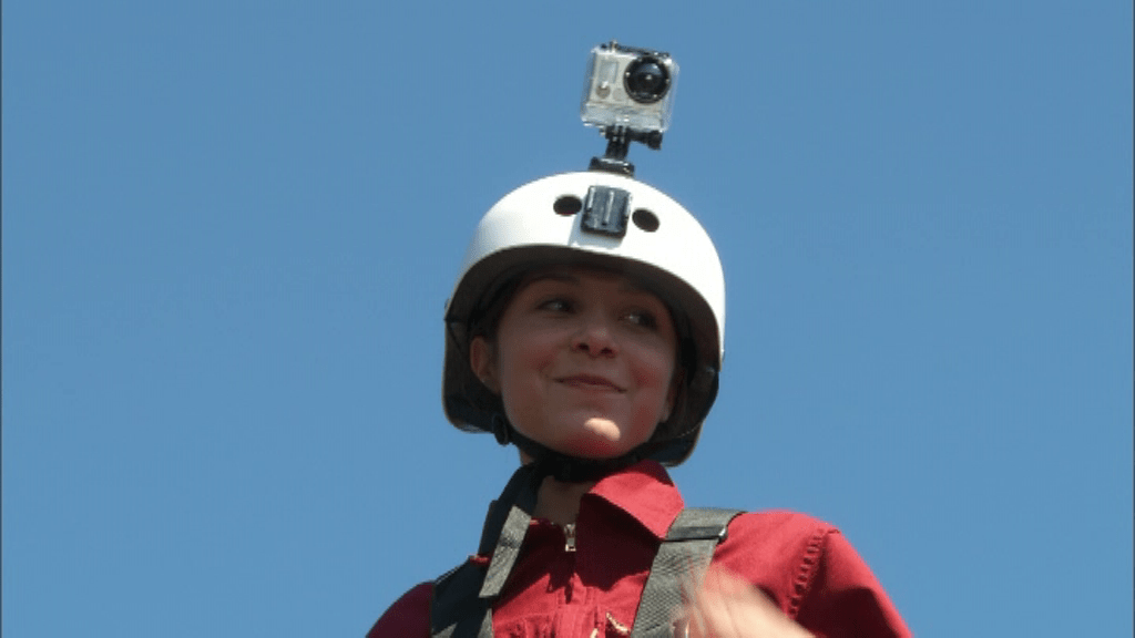 Il encourage Carla à sauter à son tour, installé sur les bords de la rivière. Carla est souriante. Elle saute, les premières secondes se passent bien, elle est heureuse. Puis, la corde casse.