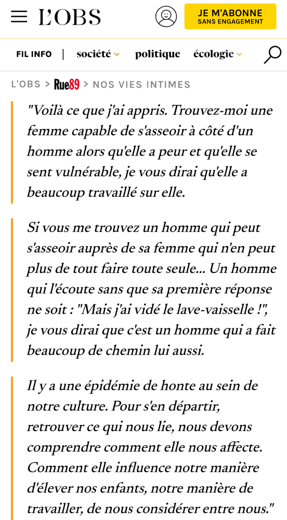 Brené Brown dit LA peur de la femme et LA peur de l’homme